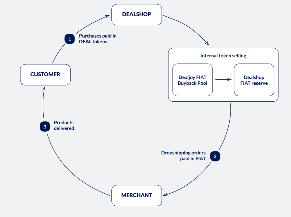 Their documentation hints that the sellers themselves will not receive tokens as payment. For them, the whole calculation will be phyty, and only the participants of the platform will operate the crypto currency. When buying, they will be forced to buy more and tokens, which can be sold through the store Dealjoy. After selecting the goods and paying for them in the crypto currency, the user goes into the background and the computer code starts working. He uses his own platform pool, converts tokens into a currency and pays for the services of an entrepreneur.
